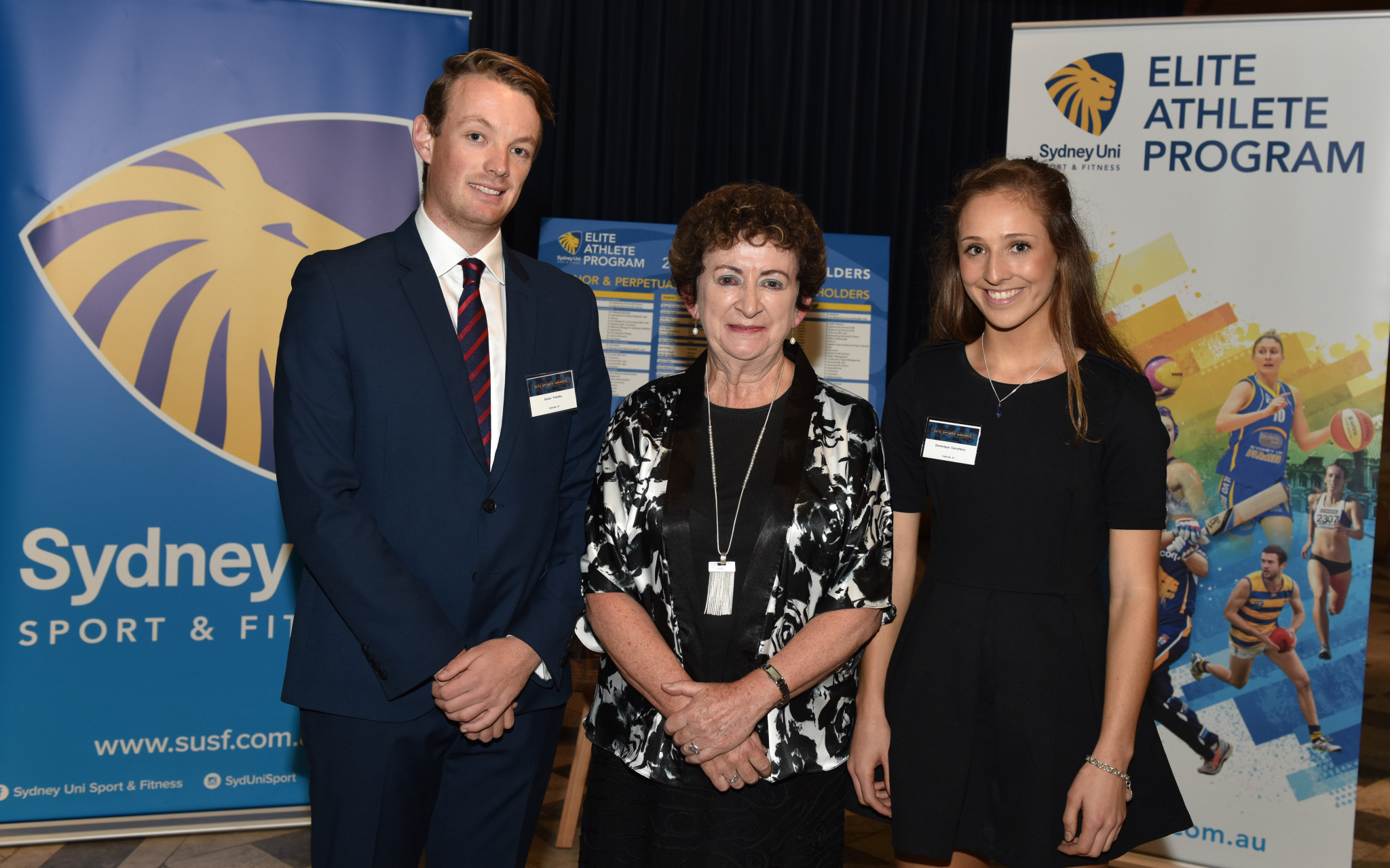 Congratulations to Dom Carruthers (soccer) and Xavier Frawley (cricket) who were recognised for their sporting abilities at the recent University of Sydney SUSF Elite Athlete Program dinner.Xavier Frawley, Dr Marie Leech and Dominique Carruthers