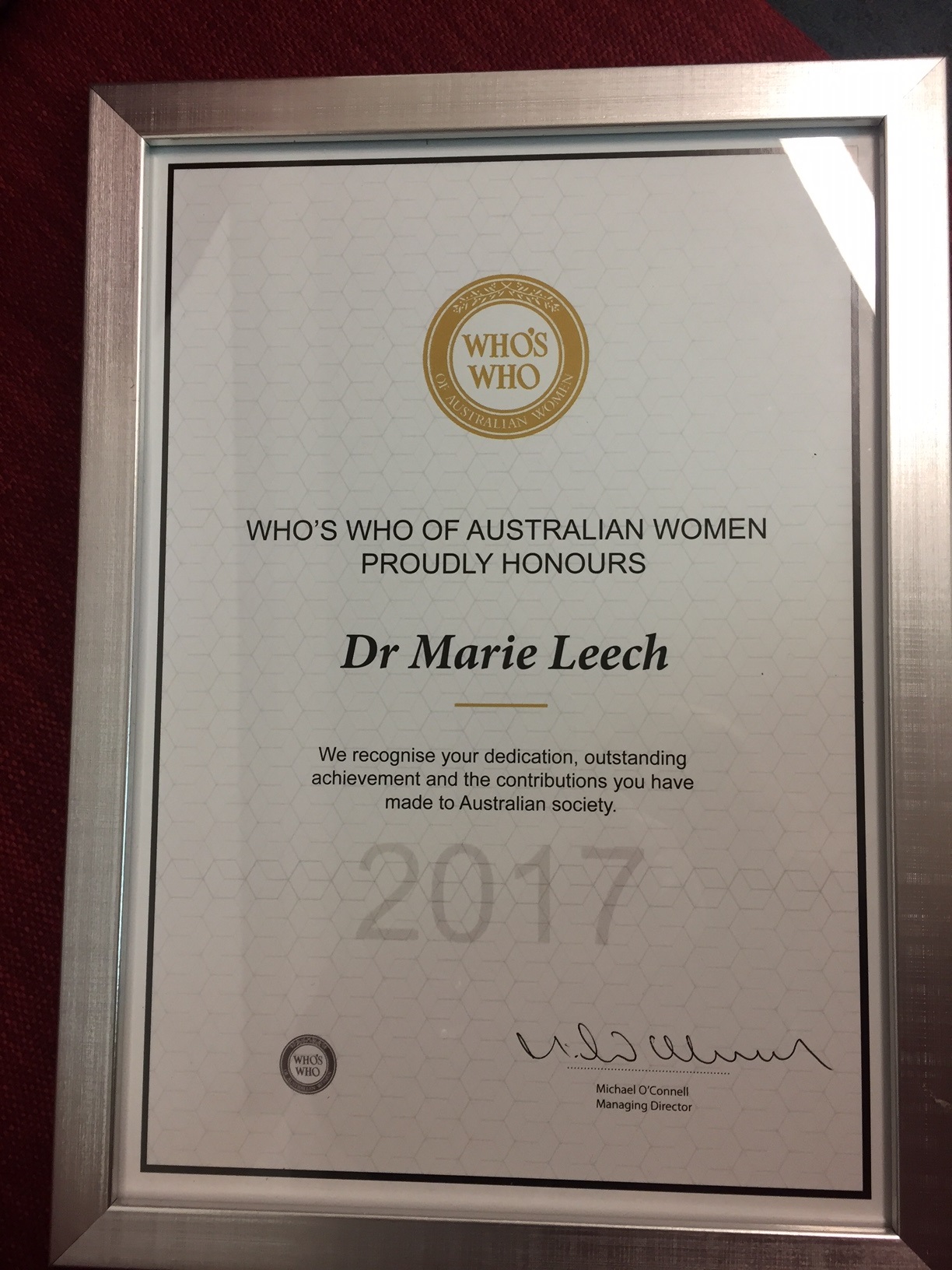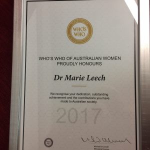 Principal Dr Marie Leech has been listed in Who’s Who of Australian Women which honours the lives and achievements of women from a diverse range of endeavours. Complete with over 6,500 biographies of prominent Australian women from a range of fields, including business, politics, the arts, sport, law, entertainment and academia, the book includes reflections and insights from remarkable female achievers in Australia.