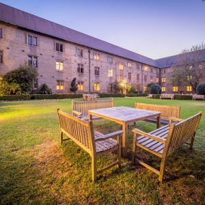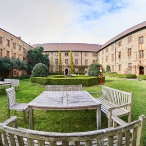 Founded in 1926, the main part of the College is located in a traditional sandstone building set amid gardens and a central quadrangle. Sancta Sophia Graduate House opened in January 2014 adding new, modern facilities to complement the traditional features of the College buildings.