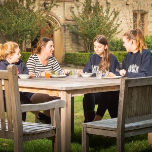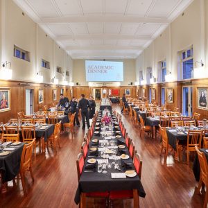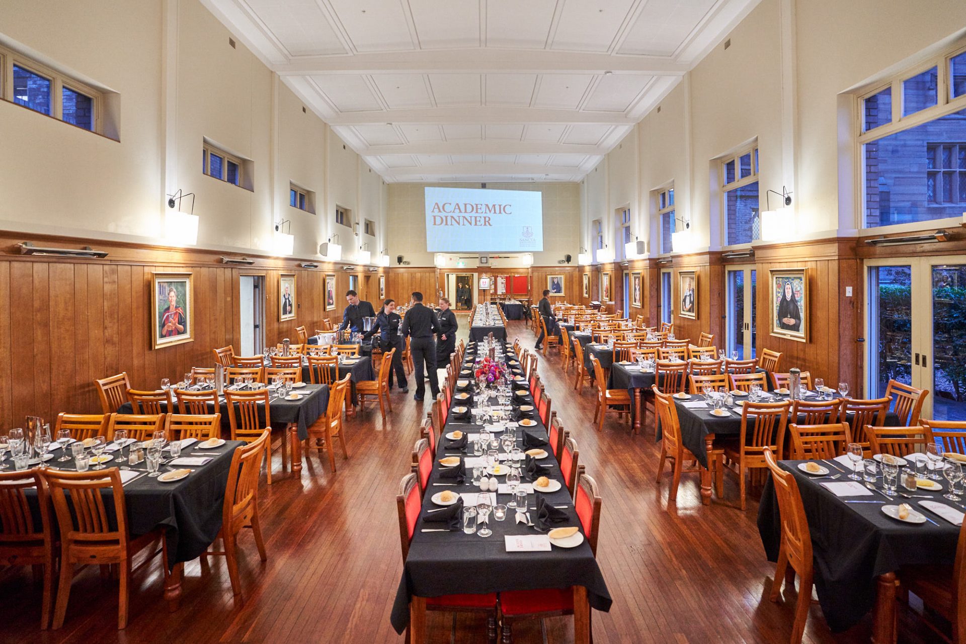 Students gather in the elegant Dining Hall for all meals on both relaxed and formal occasions.