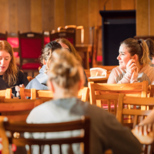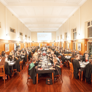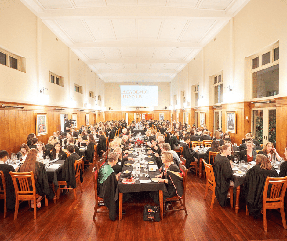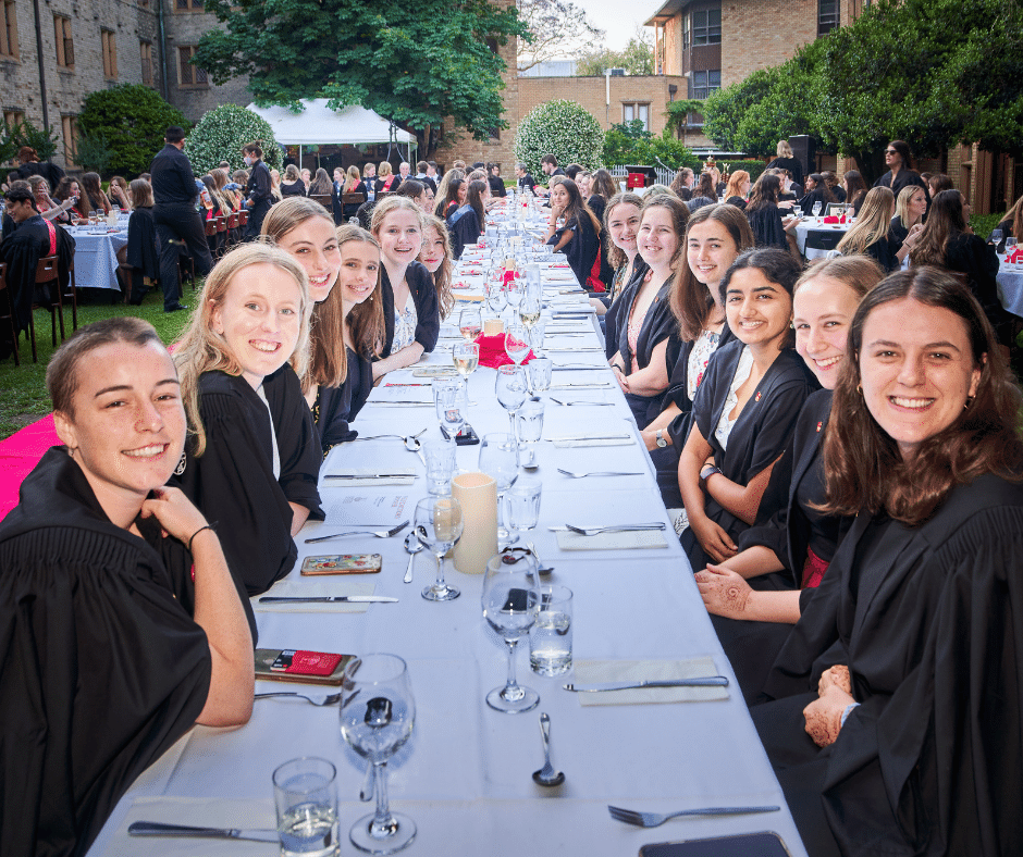 Formal Dinner is held for all students on most Monday evenings during semester. Formal Dinners are a highly valued tradition at the College. Sancta students come together in the Sheldon Dining Hall (or the Quadrangle Garden in summer) in academic dress for a special meal, a guest speaker address, and live entertainment by our residents. It is an ideal occasion for all the sections of the College to gather together.