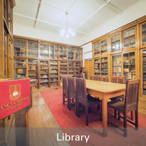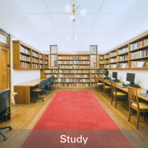 Dining hall and serveryA large dining hall where you can enjoy your meals (included in your fees) with friends | Library and study spacesPrivate and group study spaces available any hour of the day | ||